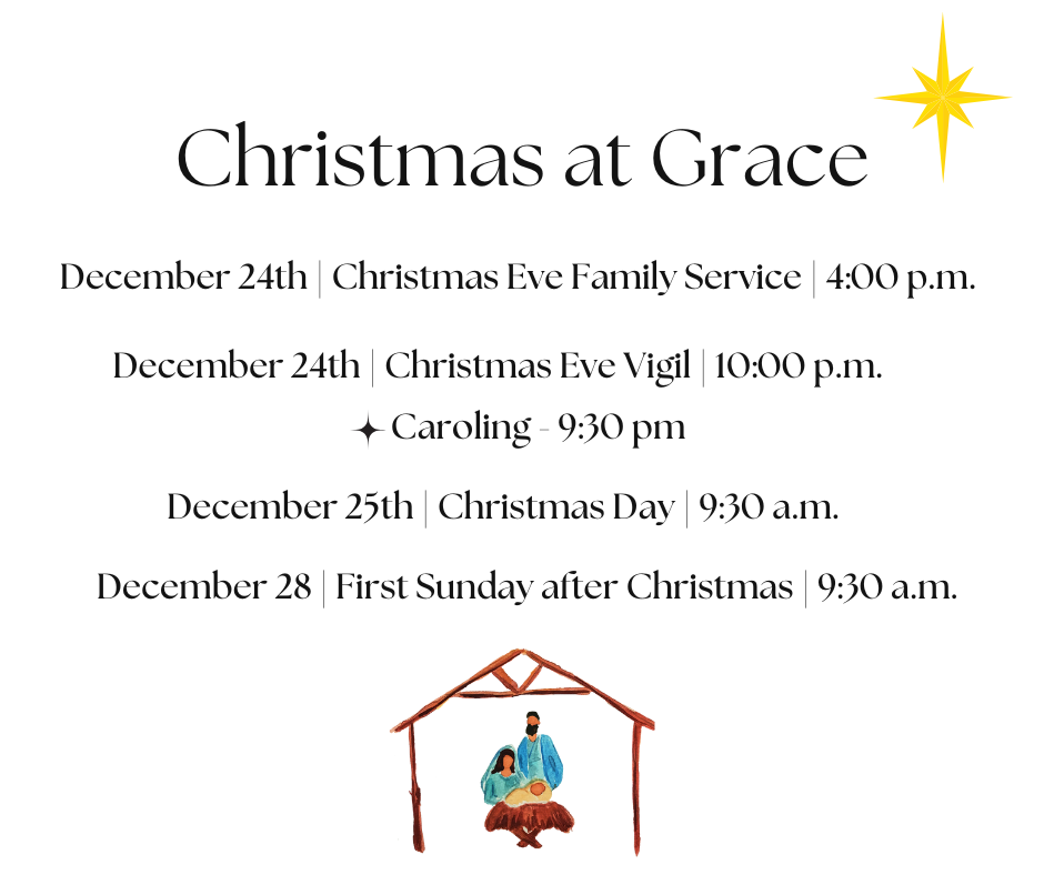 GRACE EPISCOPAL CHURCHALL ARE WELCOME Sunday Services 8:00 AM| Holy Eucharist, Rite II 10:30 AM | Holy Eucharist, Rite II (Live-Streamed) Bulletins Sunday Volunteer sign up Zoom Link - Adult Forum - Bible Study Give to Grace
